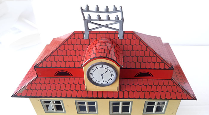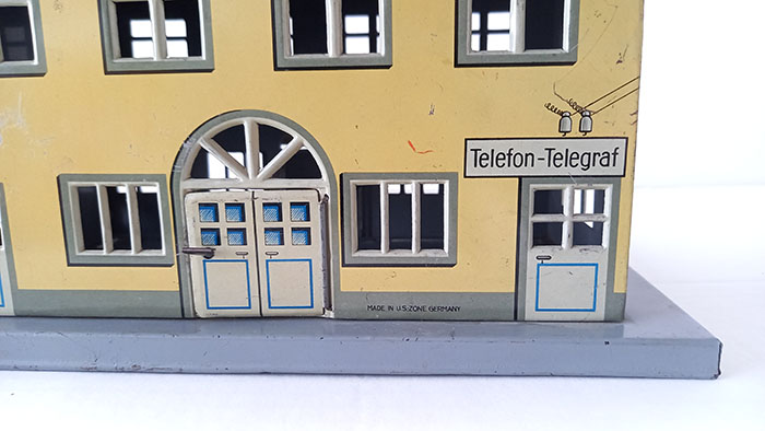 gemerkt "Made in U.S.-Zone Germany", bespeeld, Afmetingen bodemplaat 24 cm x 17 cm. Goede staat.