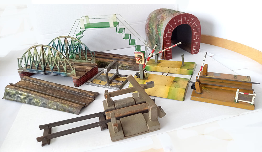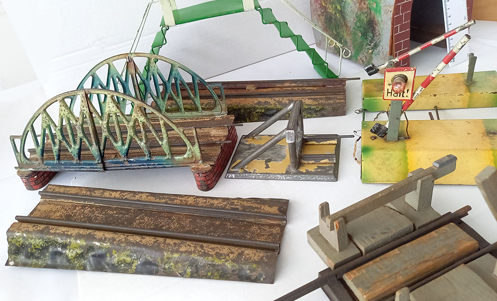 Merken en zelfbouw. Overweg op de voorgrond is van hout, waarschijnlijk zelfbouw. Doorrijhoogte tunnel is 11,5 cm.