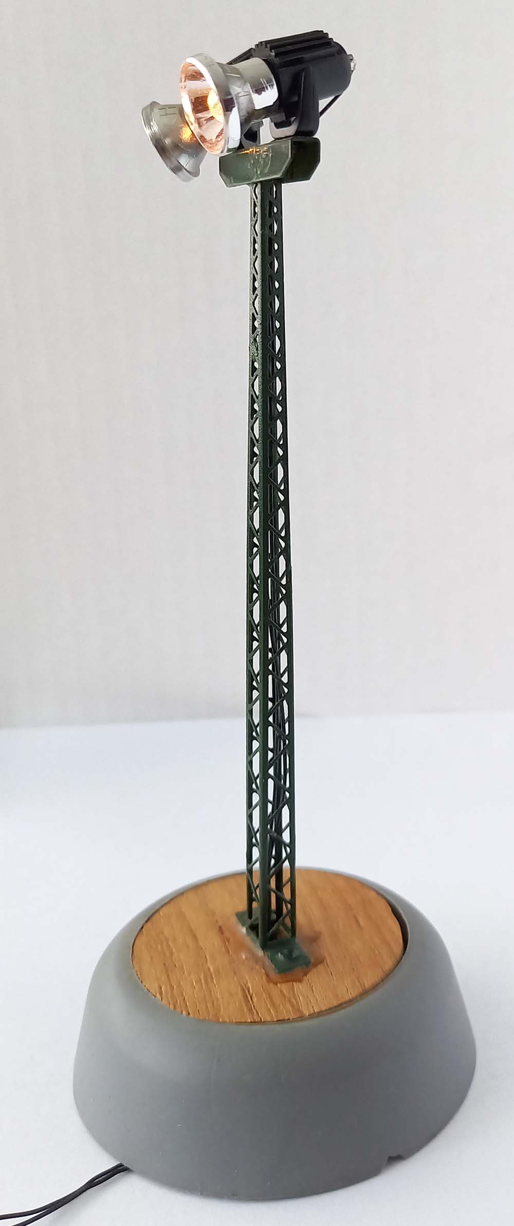 Goed getest. Schijnwerper is op een houten voet geplaatst.