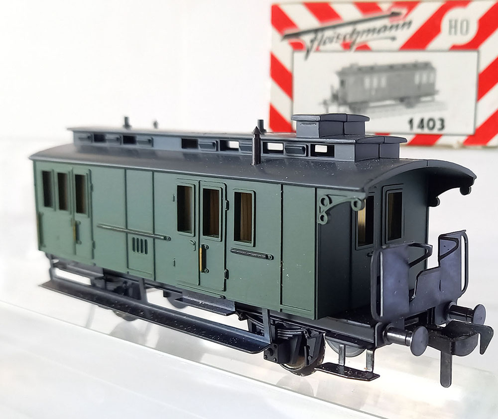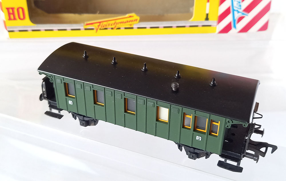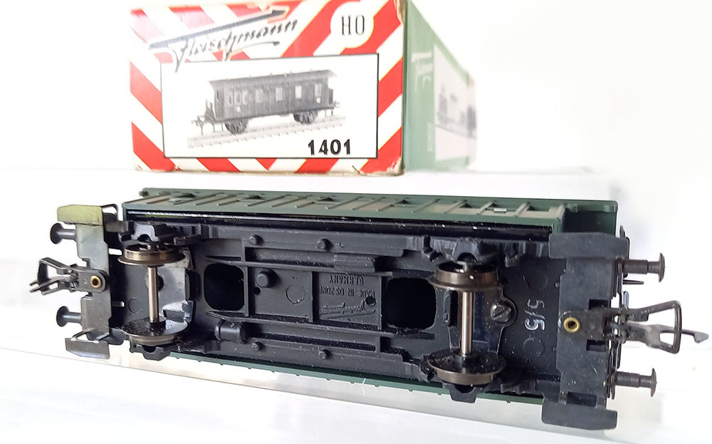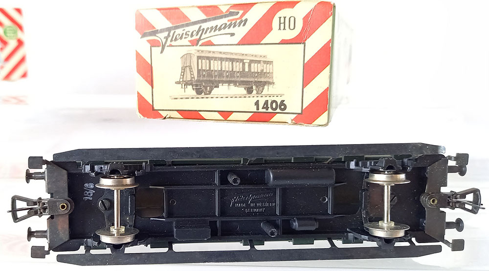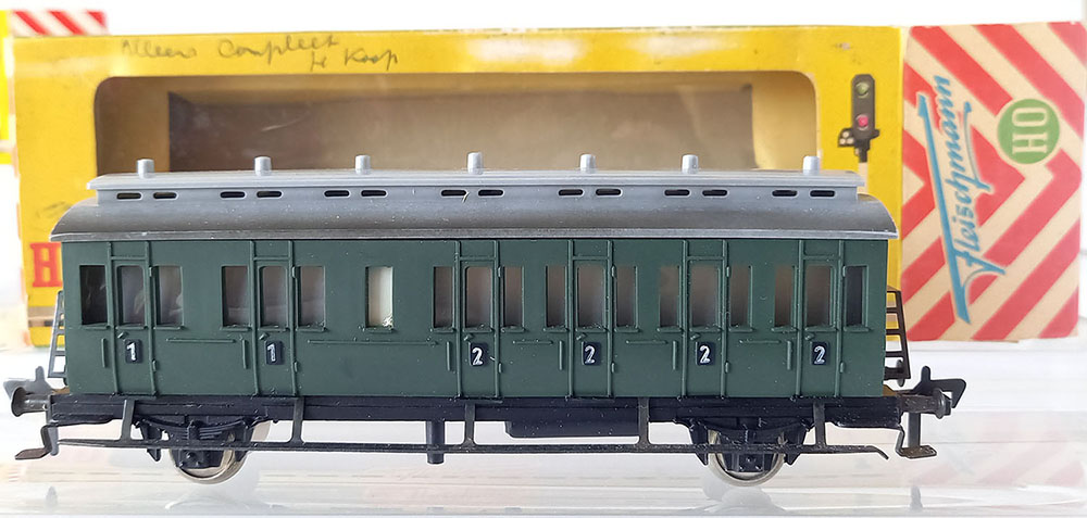 - 1406 CoupƩrijtuig, type "BC Pr21 van de Duitse Reichsbahn, onderstel metaal, bovenbouw kunststof, Uitstekende staat in originele verpakking. Geproduceerd van 1958-1963.