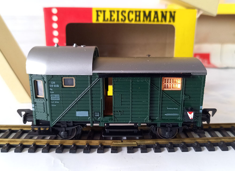 - 1468 Conducteurswagen, 2-assig, groen, type Pwg van de Duitse Spoorwegen, af fabriek voorzien van binnen- en sluitverlichting. Uitstekende staat in originele verpakking. 1967-1976.