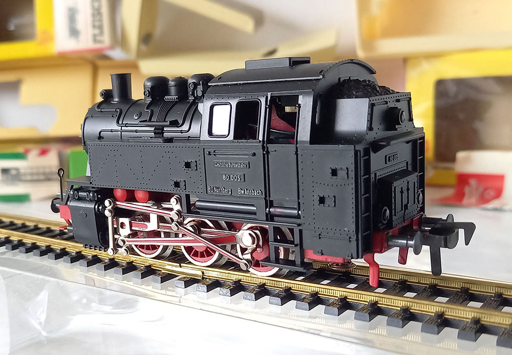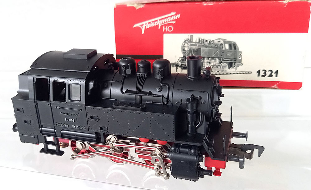 - 1321 Goederentreinloc BR80 van de DB. 3-assig, lengte 115 mm, Uitstekende gedetailleerd. Gesmeerd en uiteraard uitstekend rijdend. Verlichting voor en achter. Model uit de 60-er jaren zo goed als nieuw in de originele verpakking met gebruiksaanwijzing. 1962-1969. Versie met zwarte trappen.