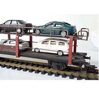 3-assige autotransporter. Model van de OFFS 55”van de Duitse Spoorwegen. Geheel metaal, dubbeldeks, beladen met 8 goudkleurige auto's (niet origineel) van Chinese makelij.