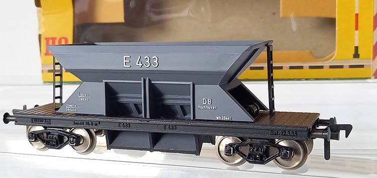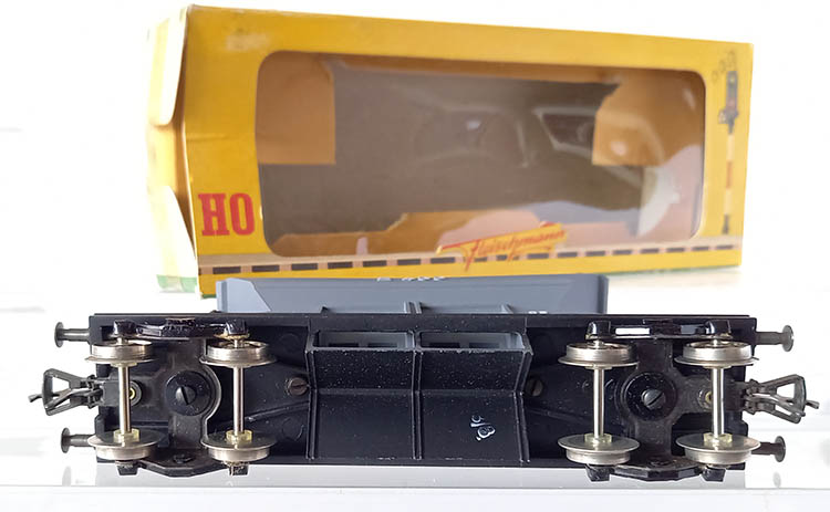 , grijs, versie met Amerikaanse draaistellen. Onderstel metaal. Als nieuw in originele verpakking, zonder achterflap. Geproduceerd van 1955-1961.