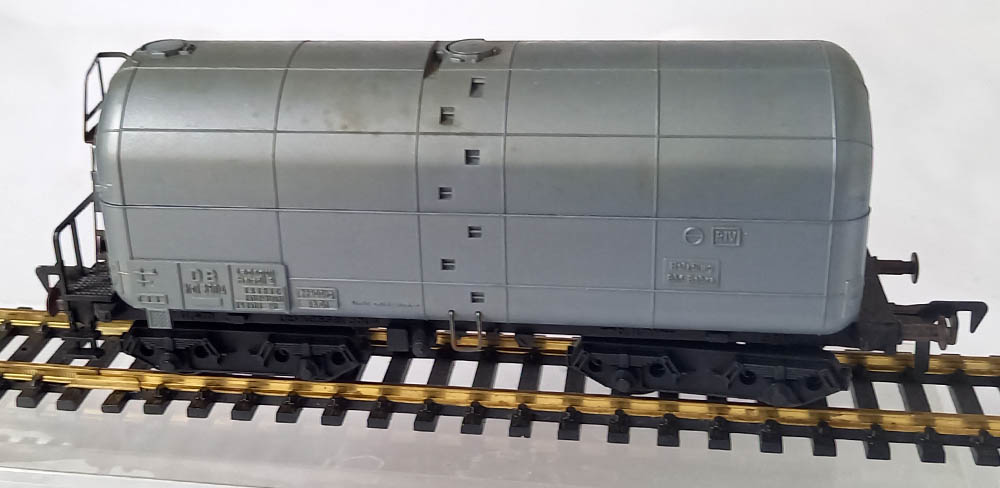 ontstaan uit bouwpakket. Stookolie wagen. Chassis van metaalspuitgietwerk met een ketel van kunststof. Lengte over de buffers 140 mm. Redelijk, maar beetje smoezelig.