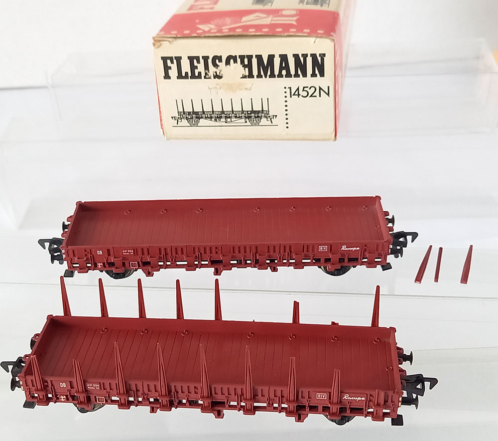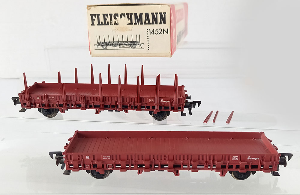 2-assig, wagons zelf verkeren in uitstekende staat, maar rongen ontbreken geheel of gedeeltelijk. 1 x originele verpakking. Prijs is voor beide wagens.