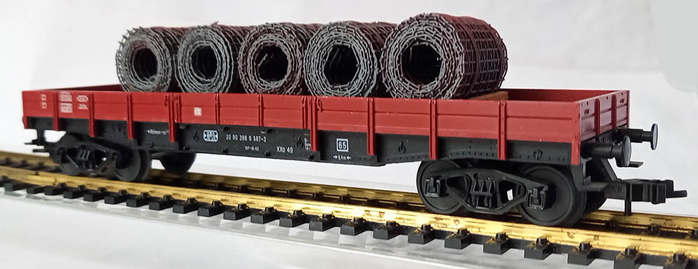 met lading rollen staal, serie Rklmm-tu van de Duitse spoorwegen, lengte 155 mm. Epoche IV. Uitstekende staat.