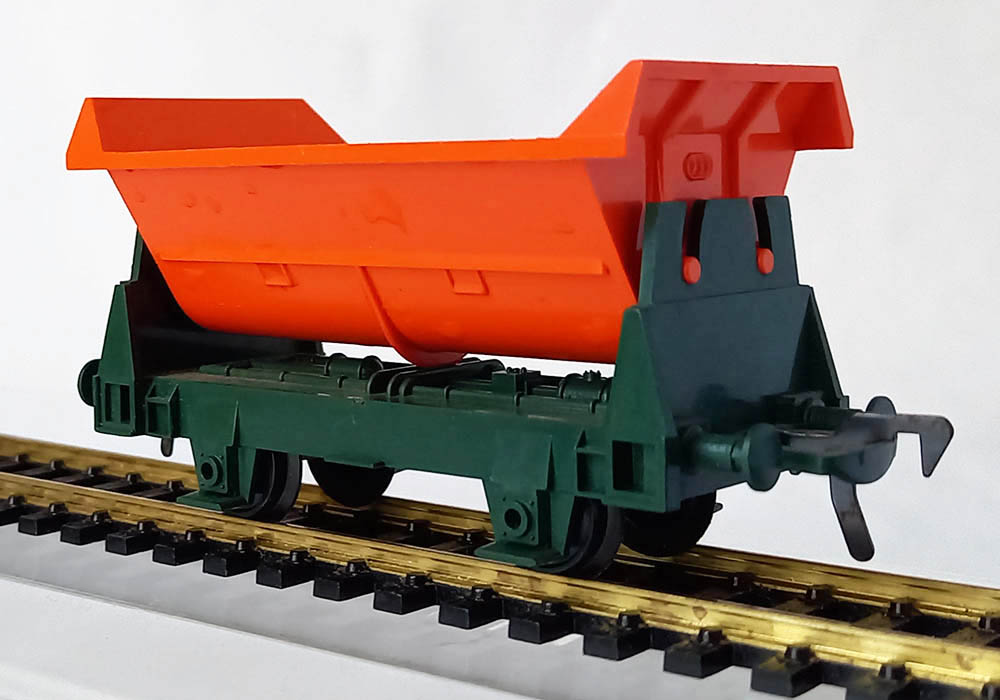 oranje/groen. Kan aan beide zijden gelost worden. Uitstekende staat.Eerste versie van dit type wagen.