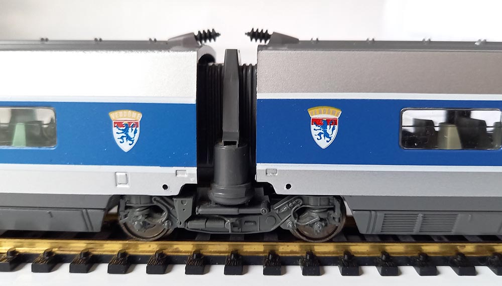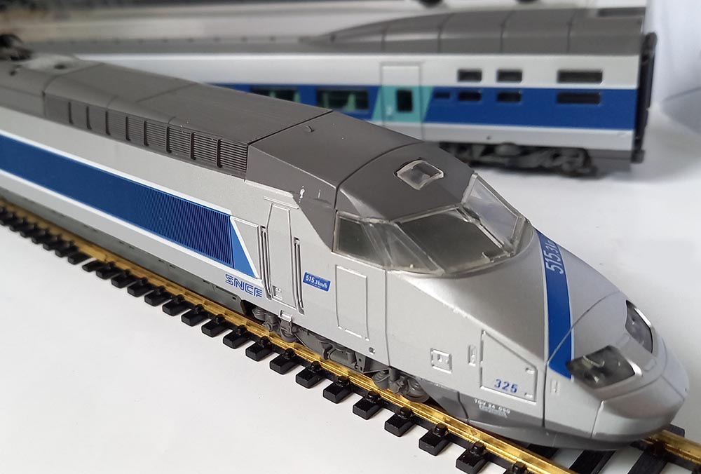 4-delig treinstel van de Franse Spoorwegen (SNCF), kleur blauw/zilver. Het model draagt treinnummer 325 dat het wereldrecord voor de snelste trein behaalde met een snelheid van 515,3 km/h. Tijdperk V. Verlichting in het motordeel. Met interieur. Het treinstel verkeert in uitstekende staat, maar op 1 plaats zit er een weinig kleurverschil, zie laatste foto. Het treinstel wordt geleverd in de originele verpakking, met losse isolatoren en met gebruiksaanwijzing. Deze versie van het recordtreinstel is moeilijk te vinden.