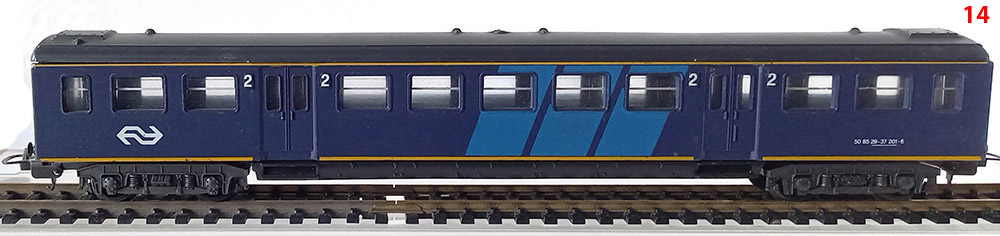vignet en reklamebanen. Nederlands rijtuig van de NS, 2e klasse. Nummer 13 mist 2 insteekbuffers, verder uitstekende staat. Prijs is per stuk. Geeft u bij uw bestelling het wagennummer (of nummers) van uw keuze op. De nummers staan op de foto's. Dit kunt u doen in de winkelwagen bij het afsluiten van de bestelling, bij de opmerkingen.