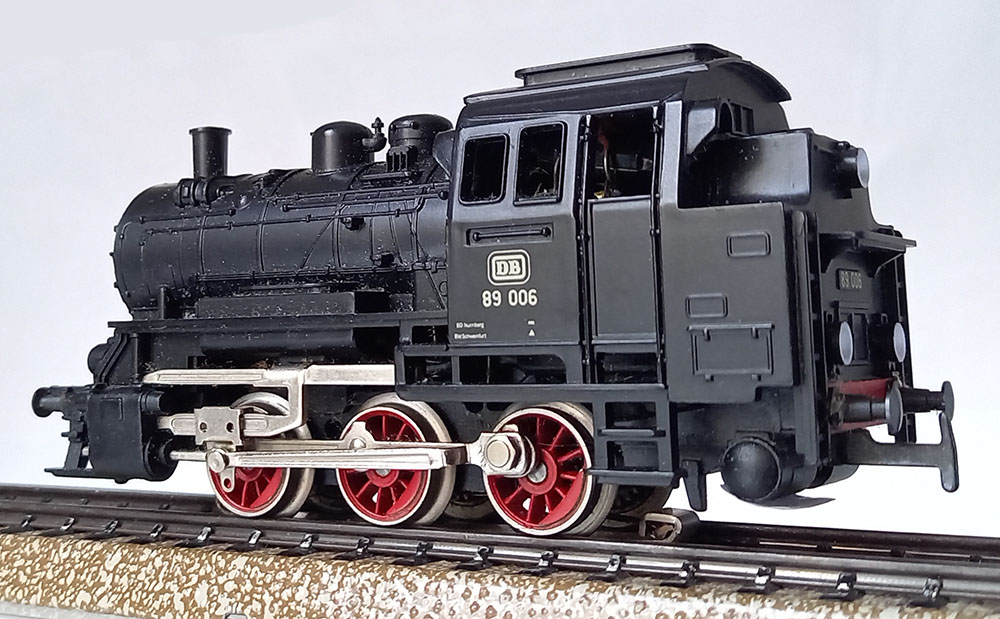 van de Duitse Spoorwegen. 3-Assig, 3 verlichte koplampen, Lengte 11 cm. Weinig gereden. Rijdt en schakelt goed. Uitstekende conditie.