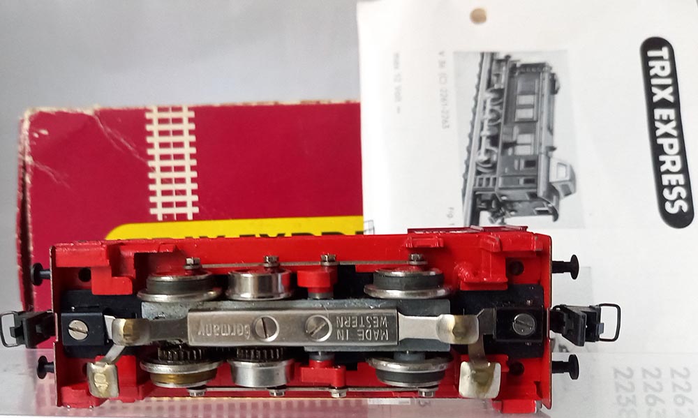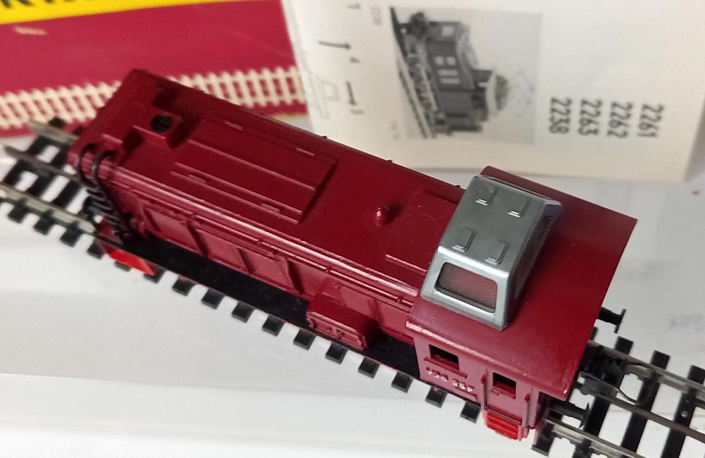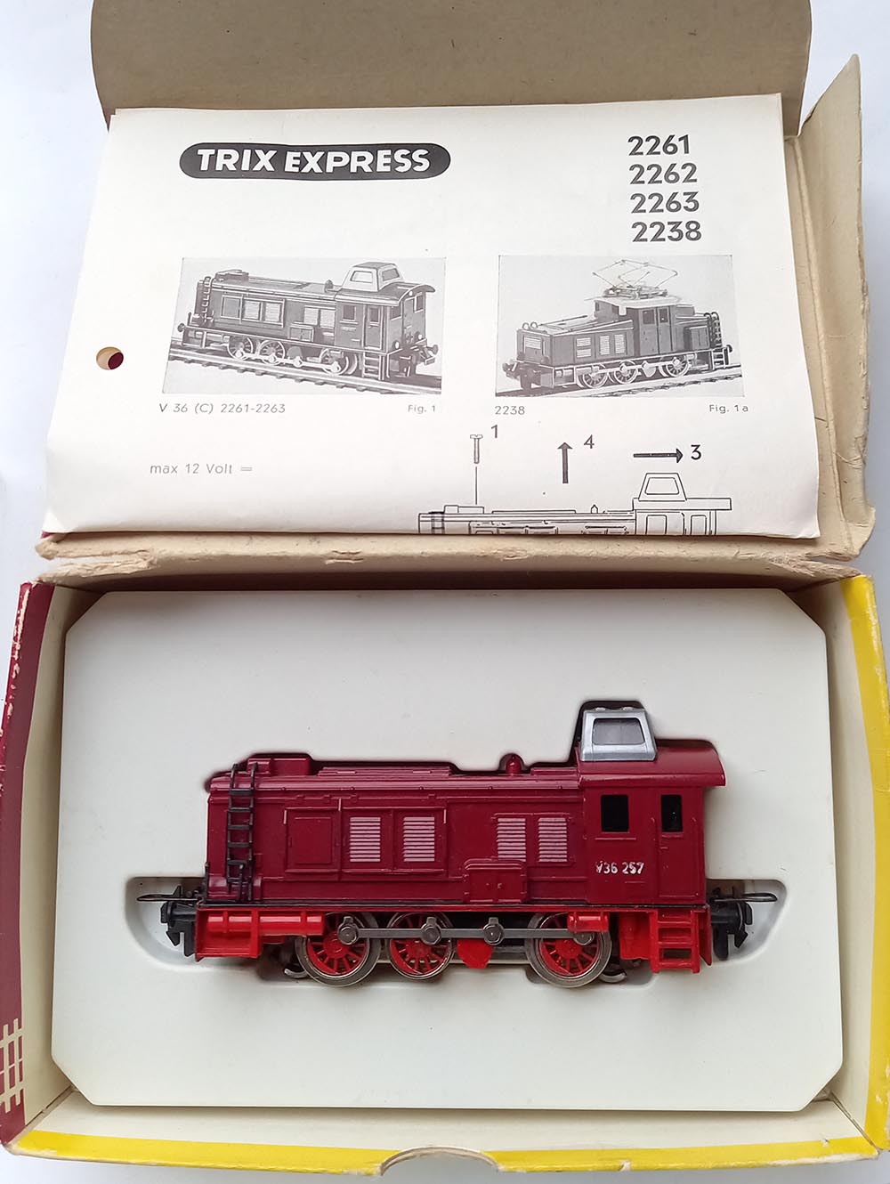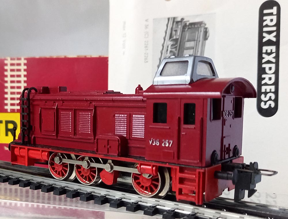 3-assige rangeer diesellok V36, rood, Geheel metaal, 3 werkende koplampen aan beide zijden. Lengte ca 11 cm. Uitstekende staat in originele verpakking met gebruiksaanwijzing.
