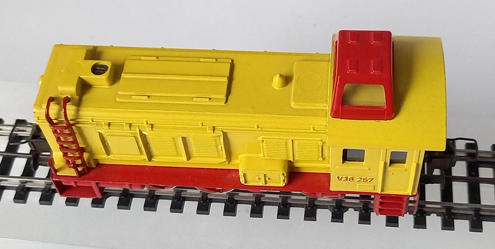 geel, eigen creatie, DB, Epoche III. Geheel metaal. Goed rijdend. Verlichting achter, lamp voor moet verwisseld worden (solderen).