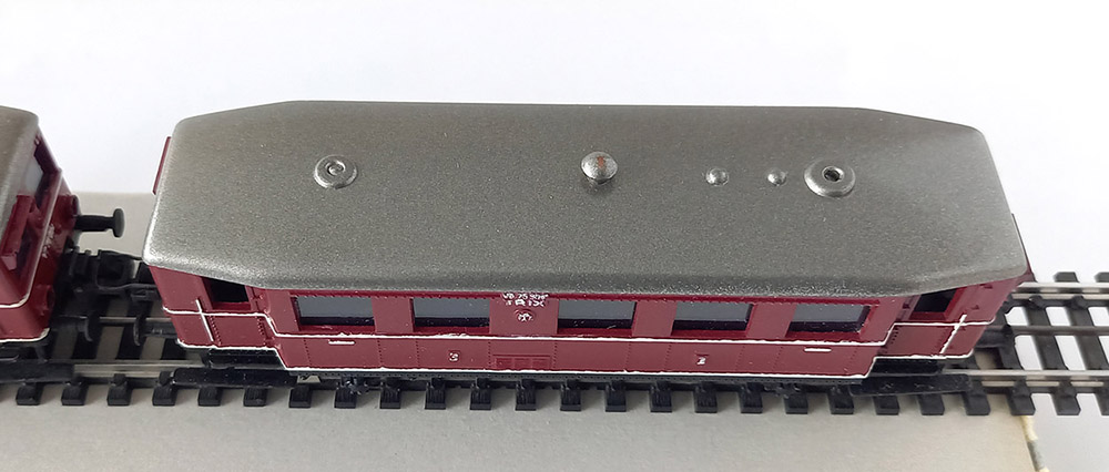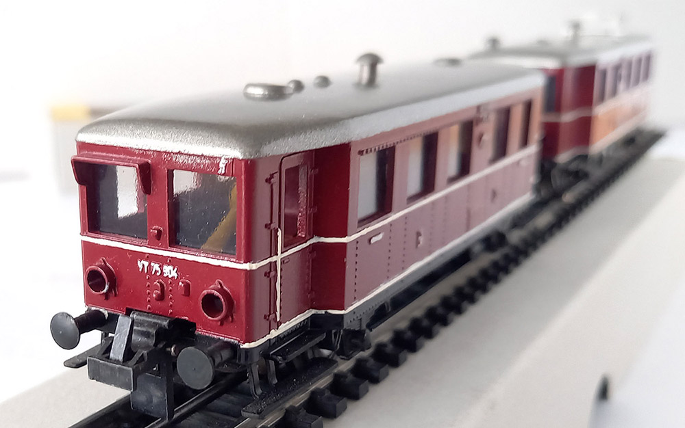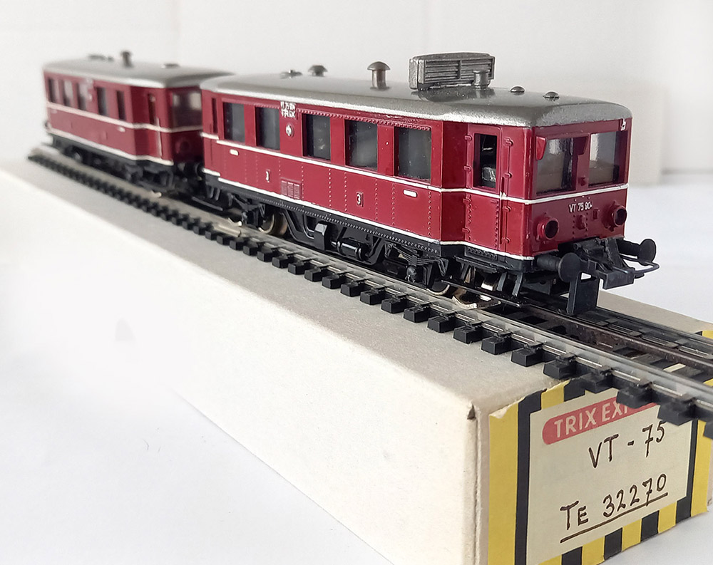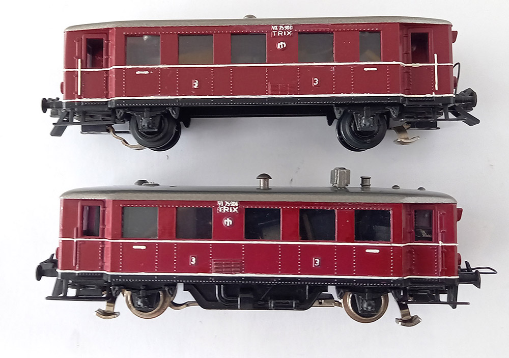 Model van een lokaalspoor-trein van de Duitse Spoorwegen. Frontverlichting (slechts) aan 1 zijde. Totale lengte ca 28 cm. Op het dak van de motorwagen missen wat ornamenten, maar het treinstel rijdt goed en wordt geleverd in vervangende verpakking. Produktie uit eind 60/70 er jaren.