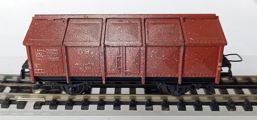 K25 "Wuppertal"van de Duitse Spoorwegen. 6 Deksels kunnen open, roodbruin met imitatie kalkwheatering. Uitstekende staat.