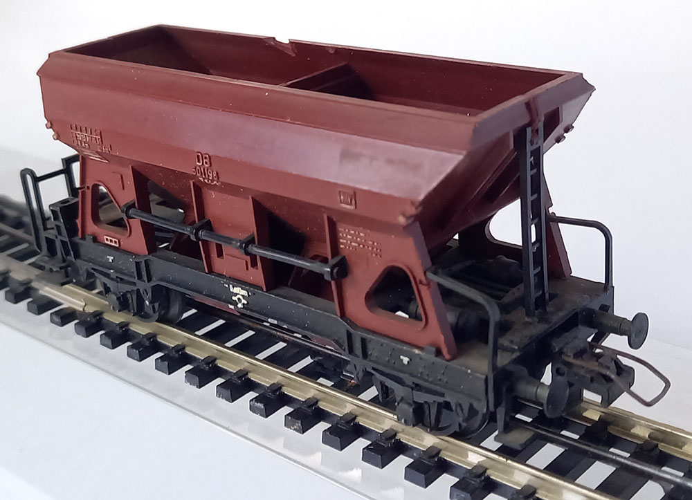 2-assig, bovenbouw kunststof, onderbouw metaal. Goede staat, maar er mist een stukje bovenaan de bak.