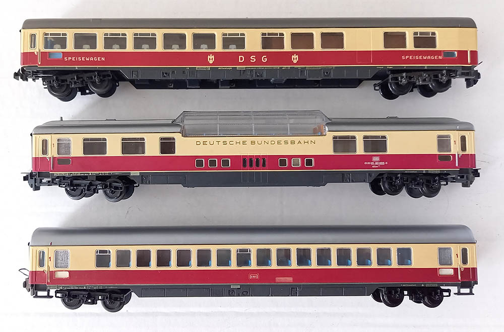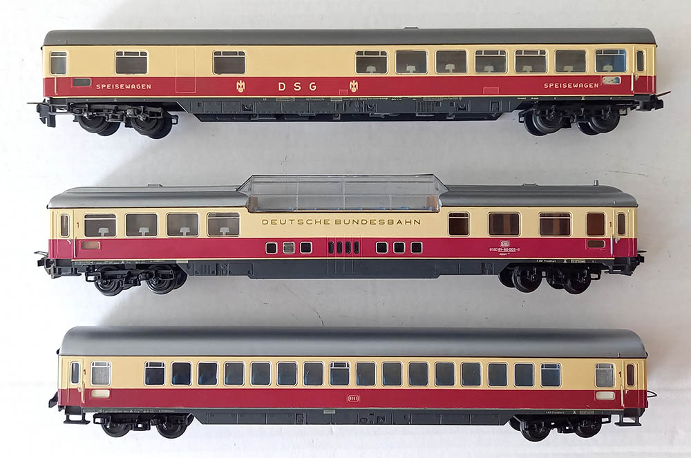 te weten: 3396 TEE-restauratierijtuig, 3394-TEE-uitzichtwagen en TEE-grootruimwagen. Alle in uitstekende staat in verpakking. Voor meer informatie klik op deze tekst of de foto hierboven.