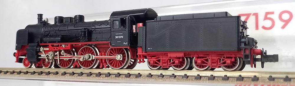 Baureihe 38.10-40, Asindeling 2´C h2, schwart, Lengte 122 mm, aandrijving in de tender, 4 slipbanden, 2-Licht frontverlichting, kleine windplaten. Uitstekende staat in originele verpakking.