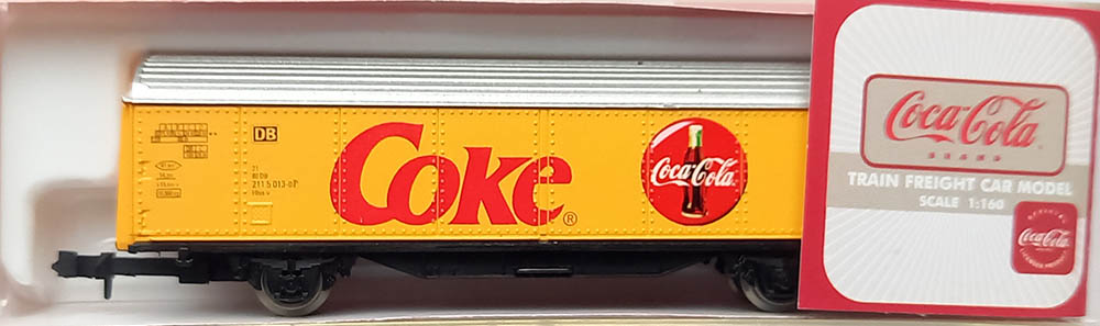 Type Hbis-v, 2-assig, geel, met opschrift ´Coke´, lengte 91 mm. Basis: Roco. Epoche IV. Uitstekende staat in originele verpakking. Zeldzaam. Uitgegeven (alleen) in 2003.