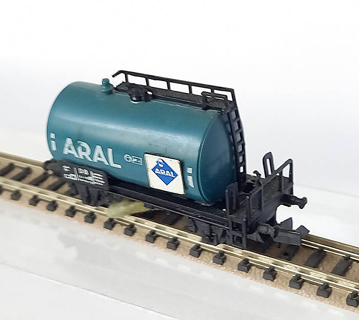 DB, Ketelwagen, Aral Reinigingswagen, natte reiniging, 503 110, blauw, 55mm, III. N-spoor. Goede staat.