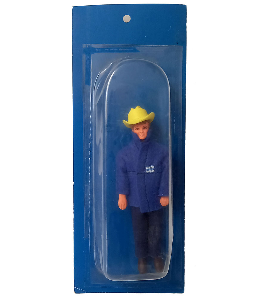 met blauwe jas. Gedetailleerde bestuurders-figuur voorzien van handmatig gefabriceerde textielkleding. Buigbaar. Schaal 1:16. Hoogte 125 mm, Nieuw in ongeopende verpakking.